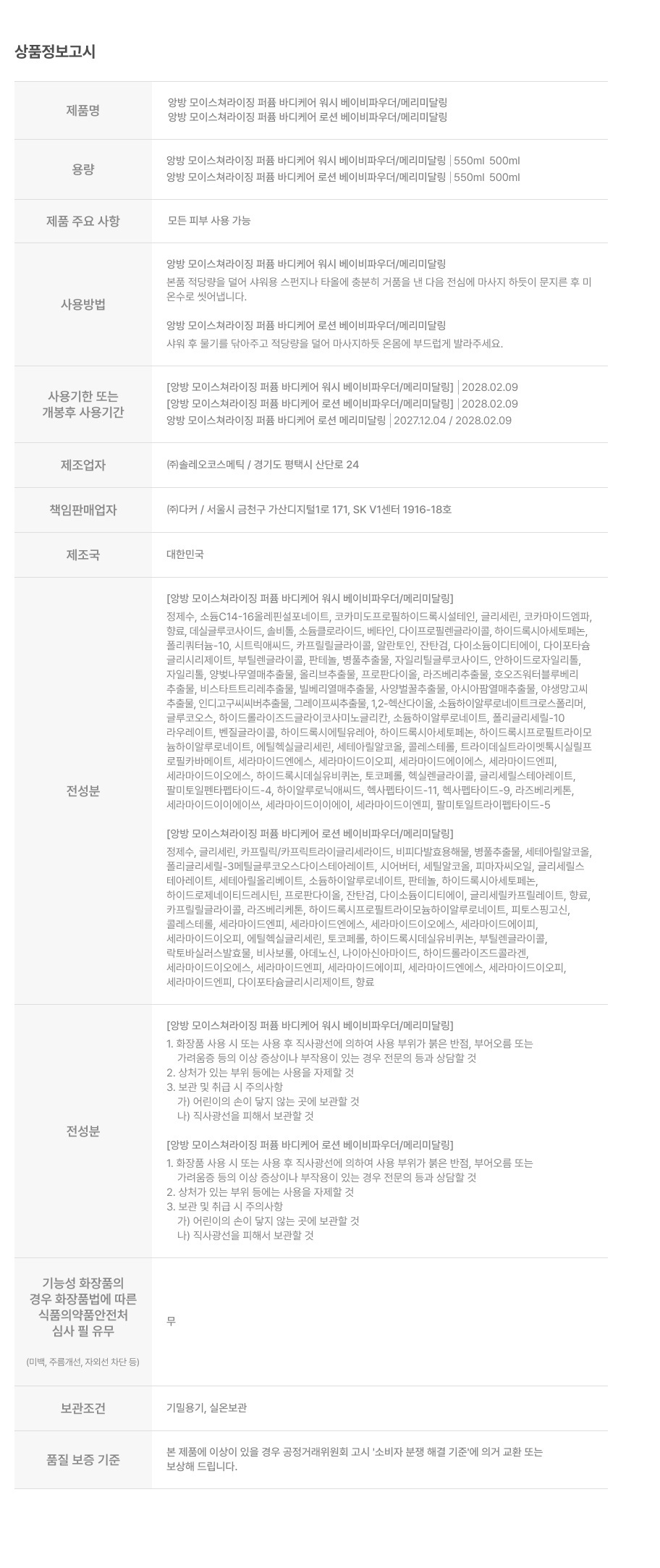 정제수, 글리세린, 세틸에틸헥사노에이트, 글리세레스-26, 하이드로제네이티드폴리데센, 코코넛야자오일, 스테아릭애씨드, 폴리글리세릴-3메틸글루코오스다이스테아레이트, 글리세릴스테아레이트, 세테아릴알코올, 솔비탄스테아레이트, 향료, 페닐트라이메티콘, 시어버터, 하이드록시아세토페논, 다이프로필렌글라이콜, 카보머, 알지닌, 베타인, 카프릴릴글라이콜, 하이드록시에틸셀룰로오스, 병풀추출물, 부틸렌글라이콜, 에틸헥실글리세린, 판테놀, 잔탄검, 1,2-헥산다이올, 다이소듐이디티에이, 소듐하이알루로네이트, 자일리틸글루코사이드, 안하이드로자일리톨, 자일리톨, 프로판다이올, 올리브추출물, 양벚나무열매추출물, 크랜베리추출물, 인디안구스베리추출물, 야생딸기잎추출물, 아사이팜열매추출물, 서양산딸기추출물, 빌베리열매추출물, 빌베리열매추출물, 로우스위트블루베리추출물, 라즈베리추출물, 다이포타슘글리시리제이트, 하이드로제네이티드레시틴, 소듐하이알루로네이트크로스폴리머, 글루코오스, 하이드롤라이즈드글라이코사미노글리칸, 폴리글리세릴-10라우레이트, 콜레스테롤, 벤질글라이콜, 하이드롤라이즈드하이알루로닉애씨드, 세라마이드엔에스, 트라이펩타이드-1, 세라마이드에이에스, 세라마이드에이피, 세라마이드엔피, 헥사펩타이드-9, 헥사펩타이드-11, 하이알루로닉애씨드, 팔미토일펜타펩타이드-4, 팔미토일트라이펩타이드-1, 카퍼트라이펩타이드-1, 아세틸테트라펩타이드-5, 아세틸테트라펩타이드-2, 라즈베리케톤, 팔미토일트라이펩타이드-5 |